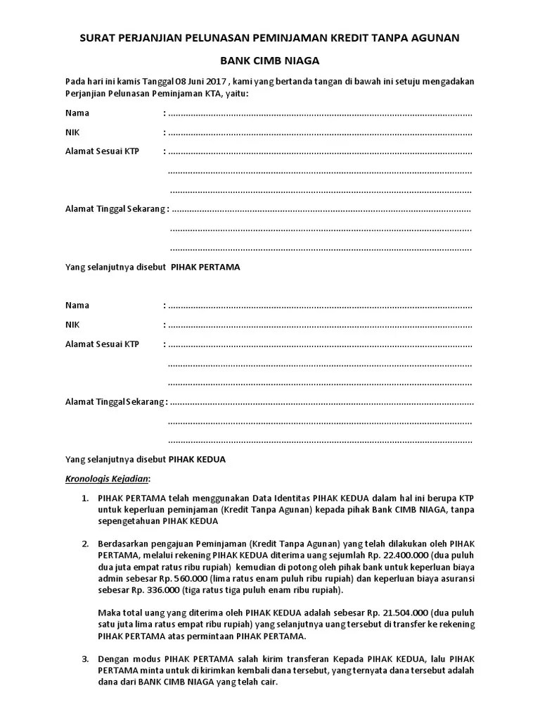 Selain itu, ada contoh surat pernyataan hutang piutang dan contoh surat. Surat perjanjian dibuat dan ditandatangani oleh kedua belah pihak secara sadar dan tanpa . Dan ditandatangani oleh kedua belah pihak secara sadar, tanpa tekanan dari pihak manapun, bertempat di . Hal ini tergantung dari kesepakatan para pihak. Surat perjanjian hutang piutang pada hari ini,.